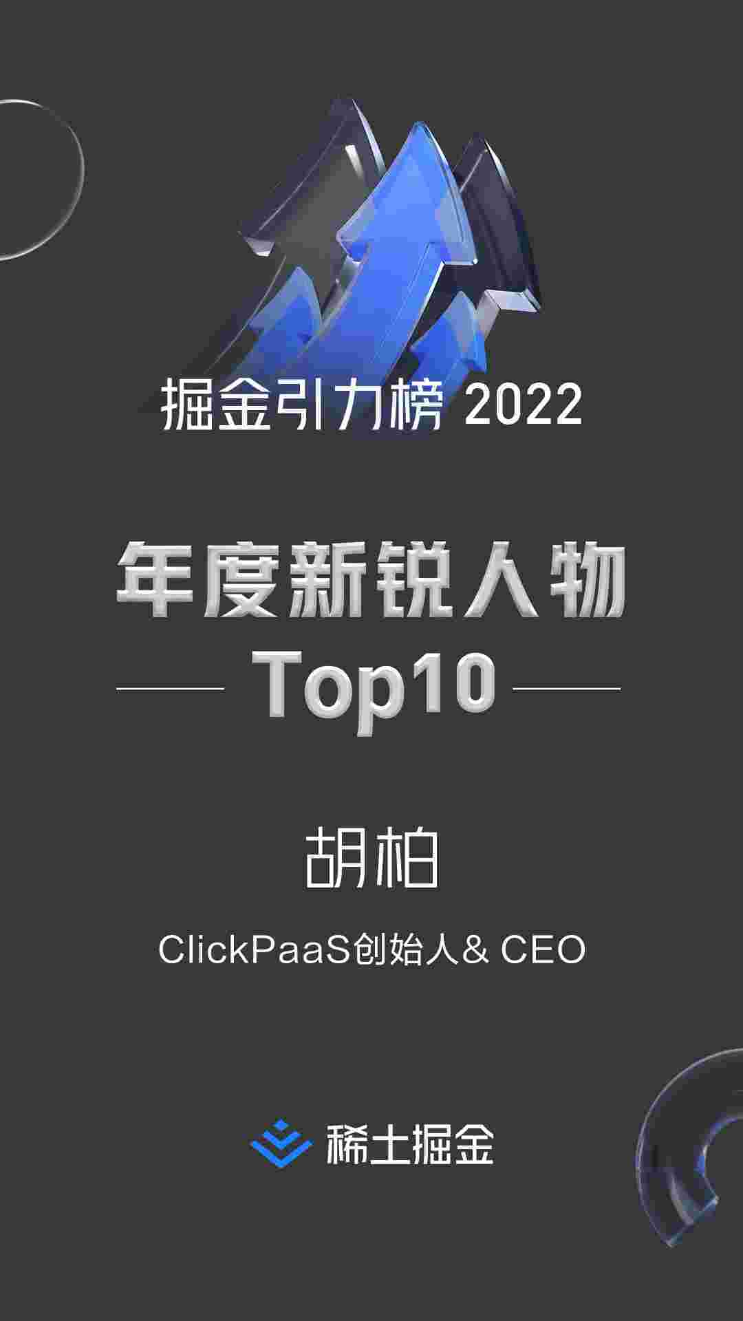 2022年1月6日,,稀土掘金社区第一届「掘金未来大会」成功举办,,会上发布了“2022 稀土掘金引力榜 年度新锐人物”榜单,,上海爱湃斯科技有限公司(简称钱能钱包)创始人及CEO胡柏实力入选年度新锐人物TOP 10。。。